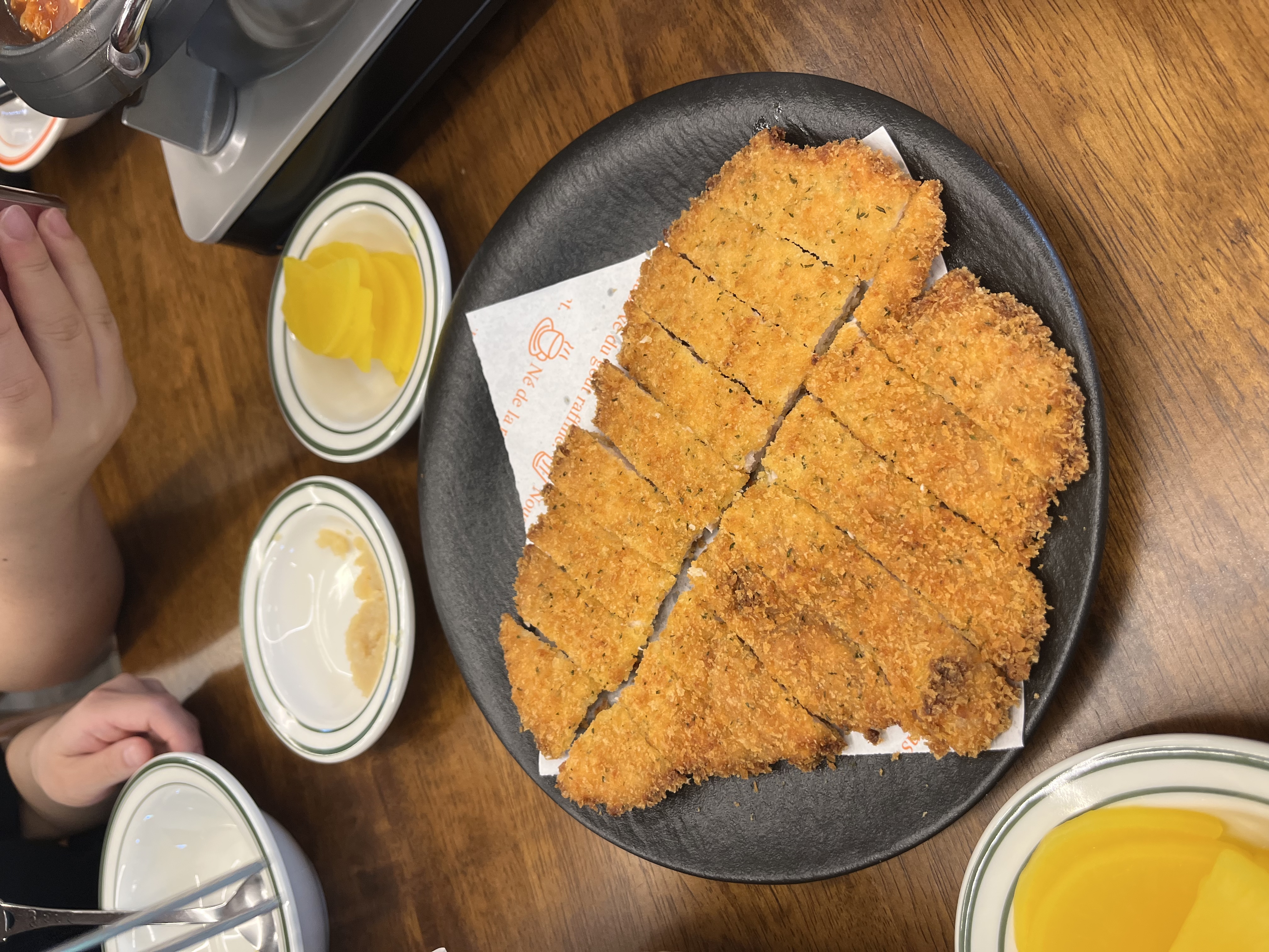 이 납작한 마늘 돈가스도 바삭하니 참 맛있었는데 그냥 먹어도 마늘 풍미가 살아있어 매력적이고 떡볶이랑도 잘 어울렸다.
