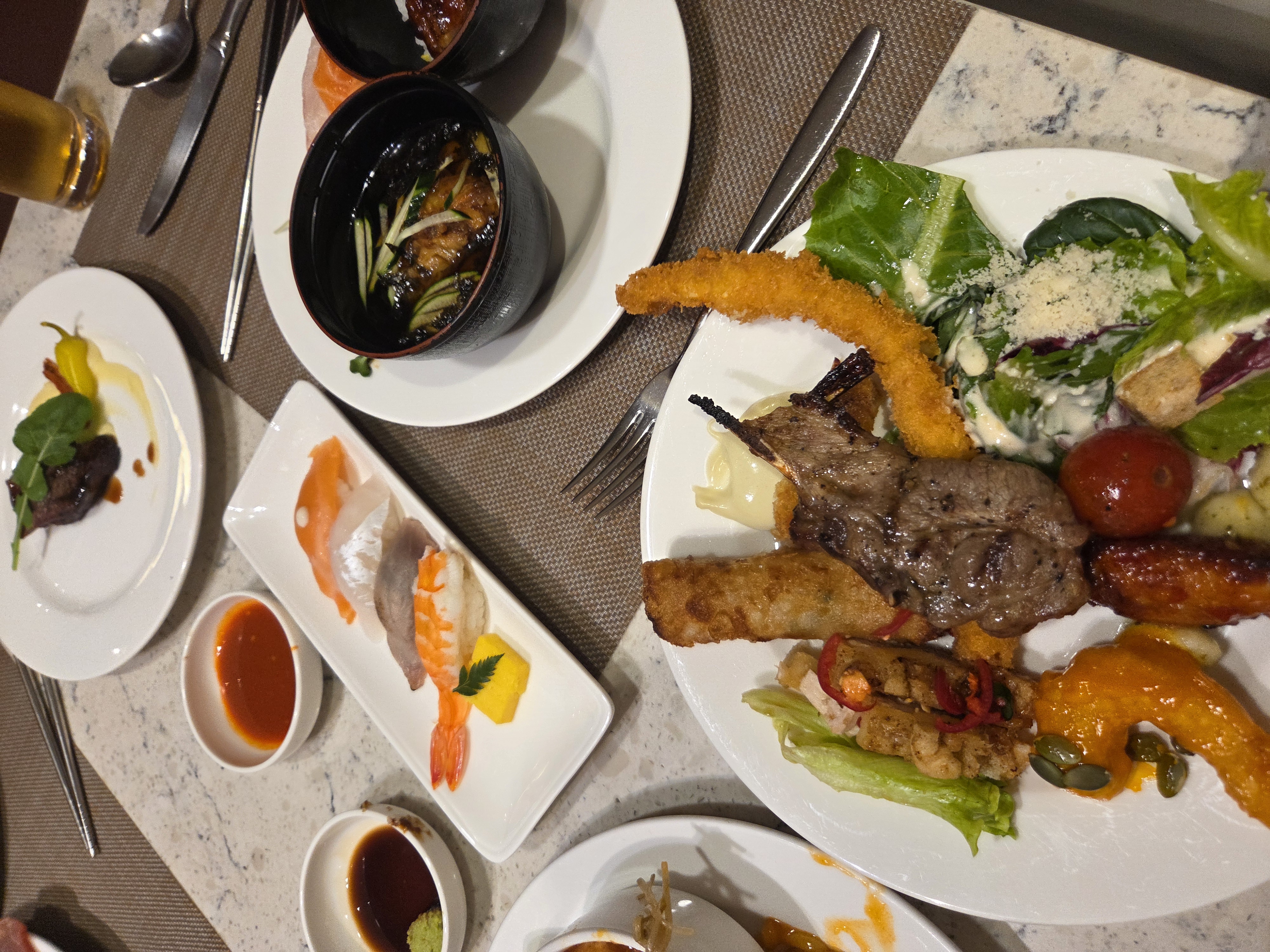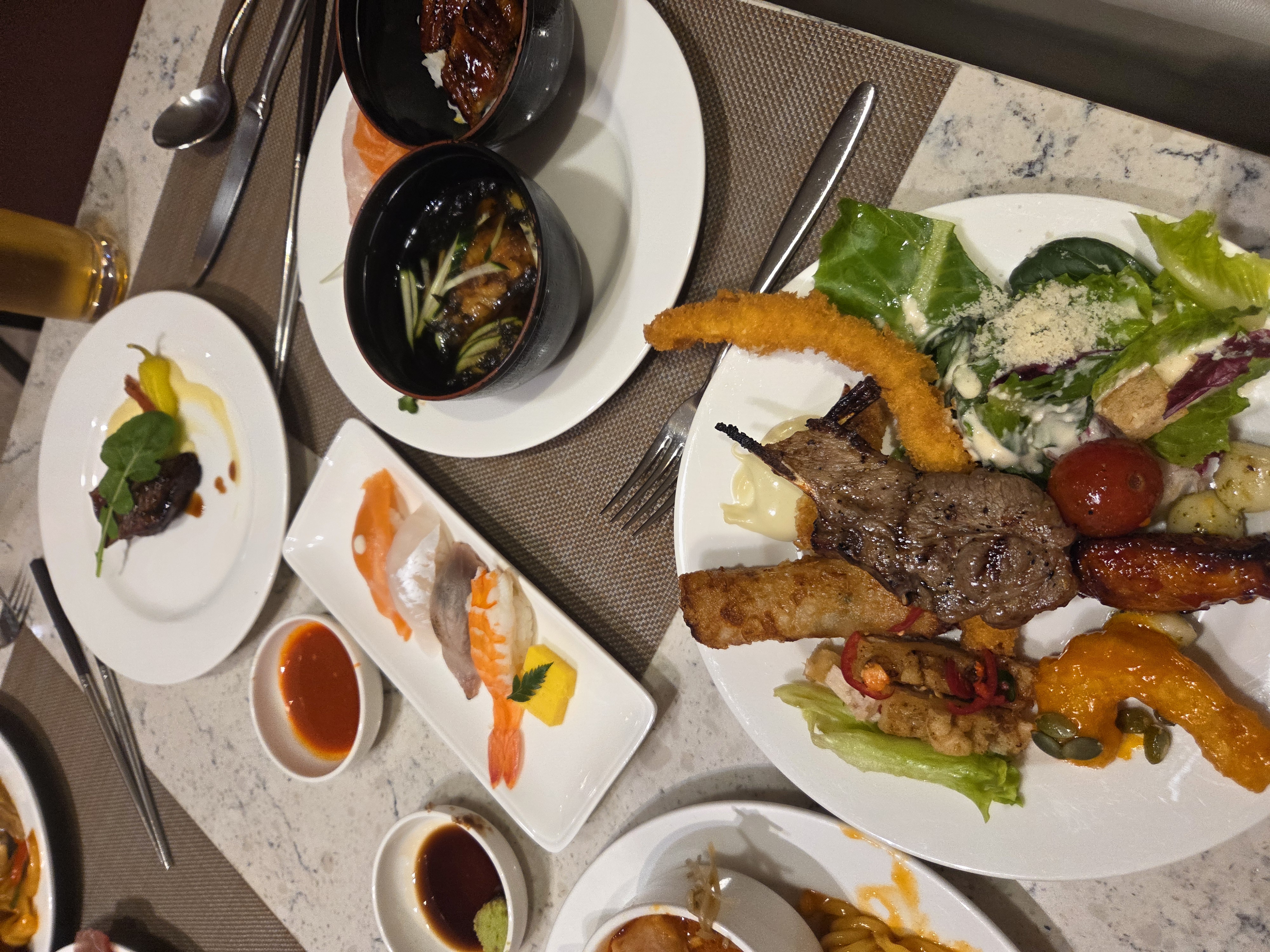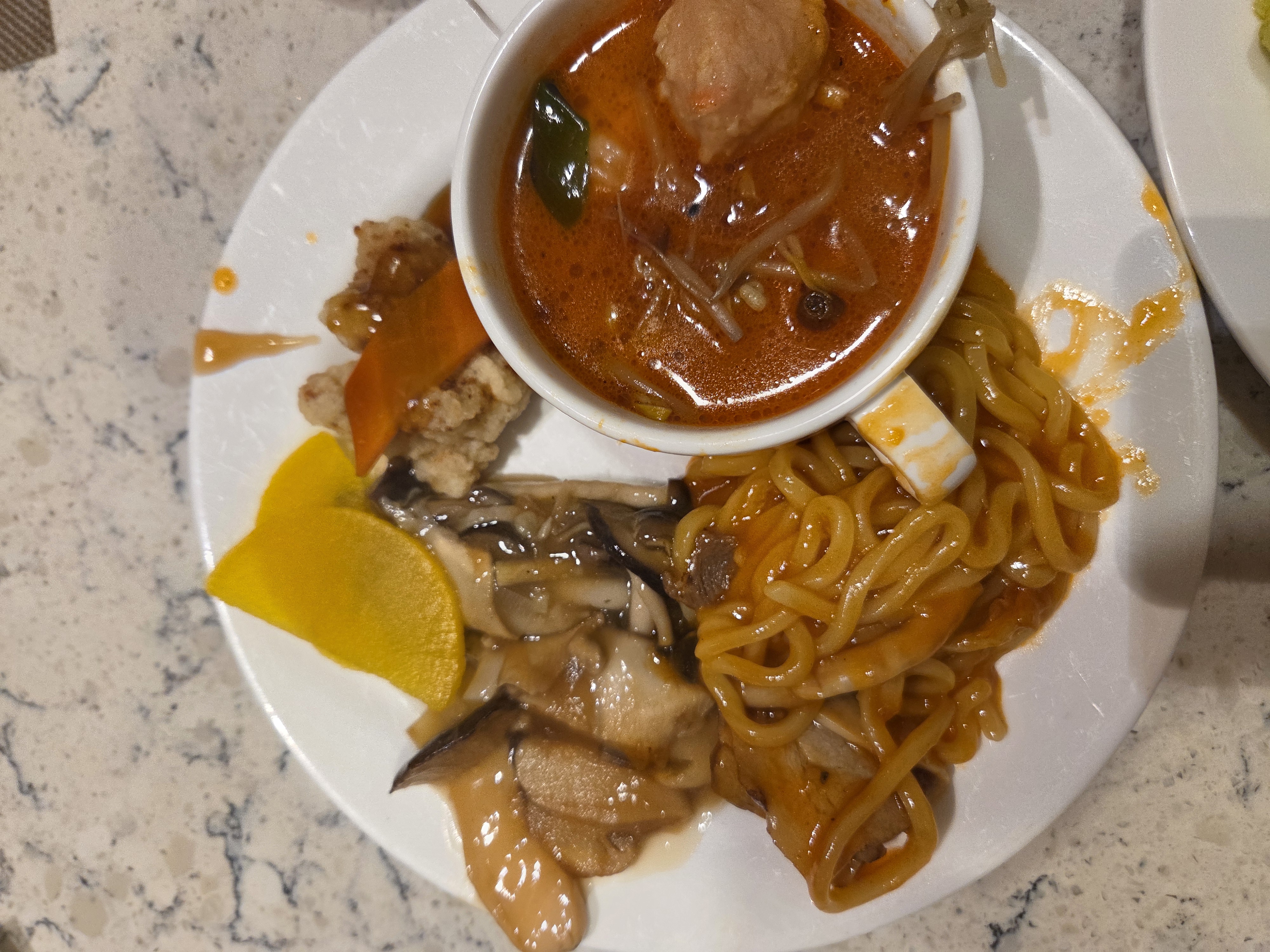 일식 회부터 초밥까지 정말 신선해서 좋았고 각종 튀김류와 중식류도 하나같이 맛있었다. 탕수육, 깐풍새우, 유산슬, 고추잡채 등 없는 메뉴가 없다. 마라탕도 준비되어 있었다.
