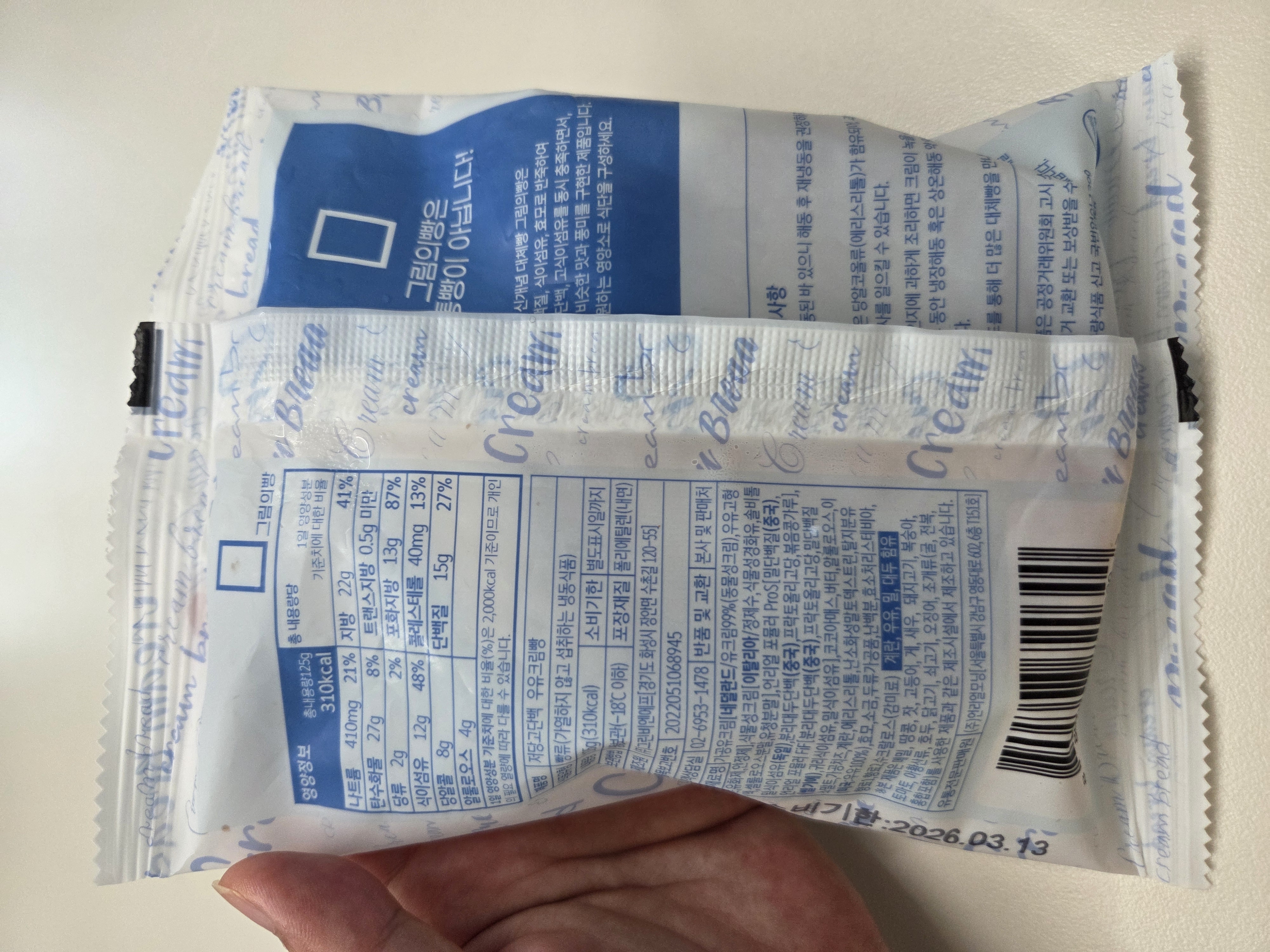 거기다 단백질은 15g! 운동하는 사람들이 먹어도 부담 덜할 듯. 하지만 칼로리는 310kcal이지만 일반 크림빵 비하면 칼로리도 낮은 편!