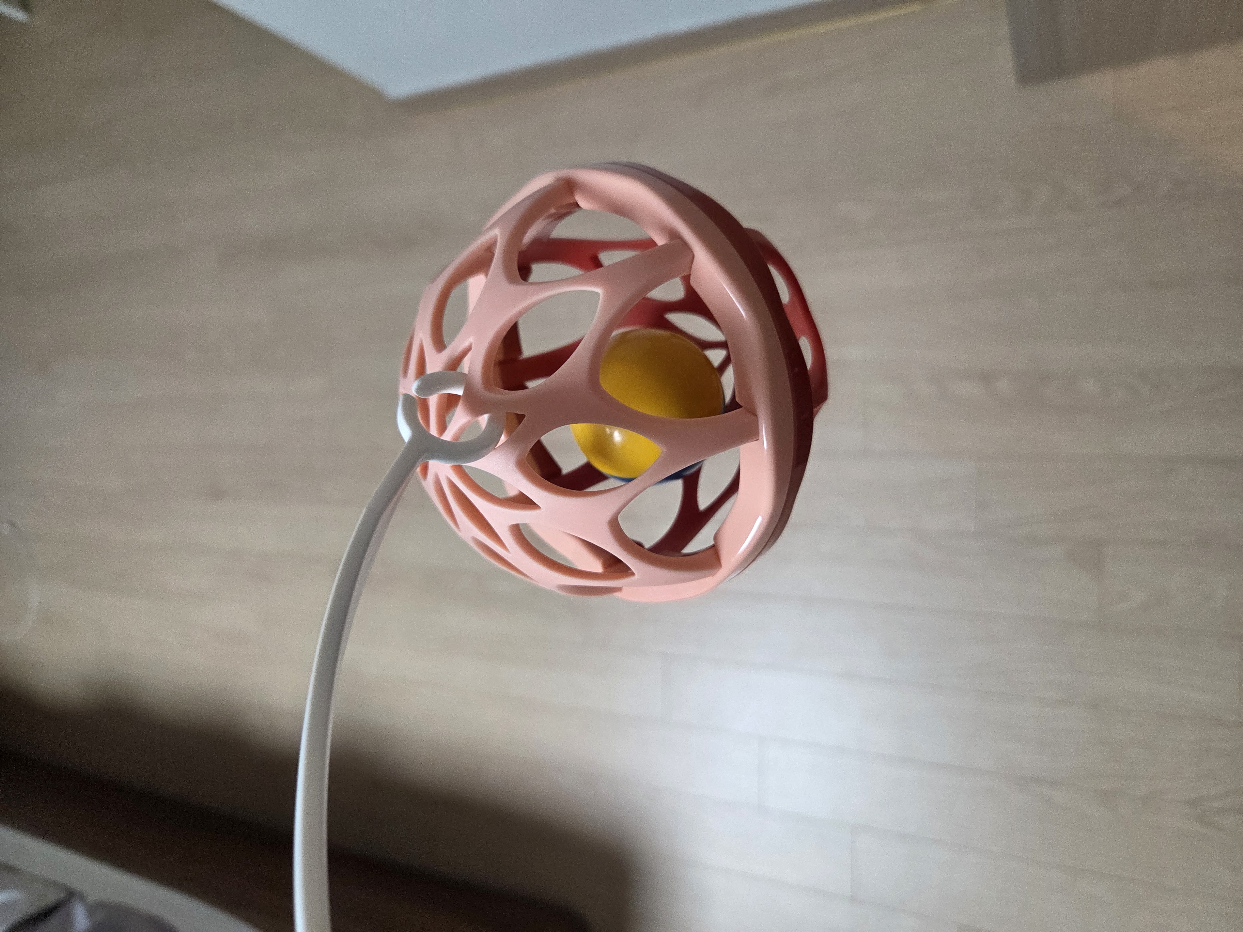 일단 안에 들어있는 딸랑이 소리가 굉장히 특이하고 찰져서 더 집중하고 잘 보는 것 같다. 저렇게 트리트랩 걸이에 걸어서 흔들어주면 아기 매우 좋아함.